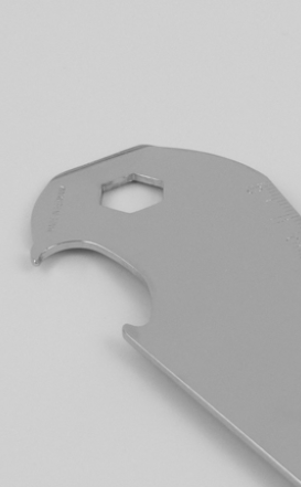 PAINT CAN OPENER NO. 7292-E Measure / Material:	approx. 13,2 cm, stainless steel Functions:			paint can opener, 3 different openers for paint cans,  10 mm wrench, ruler with cm or inch, bottle opener   MADE IN SOLINGEN/GERMANY back back forward forward Contact Legal Notice Privacy Policy DUISBERG production